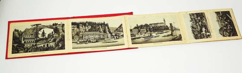 Originales Leporello, mit 19 Seiten mit Ansichten von der Sächsischen Schweiz, ca. um 1890.