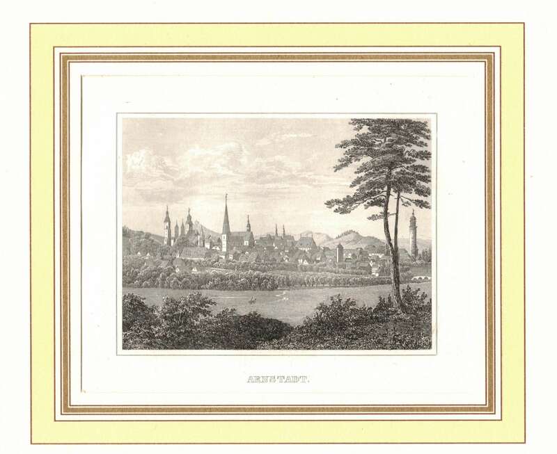 Lithografie Arnstadt Thüringen um 1870 Passepartout Litho Print