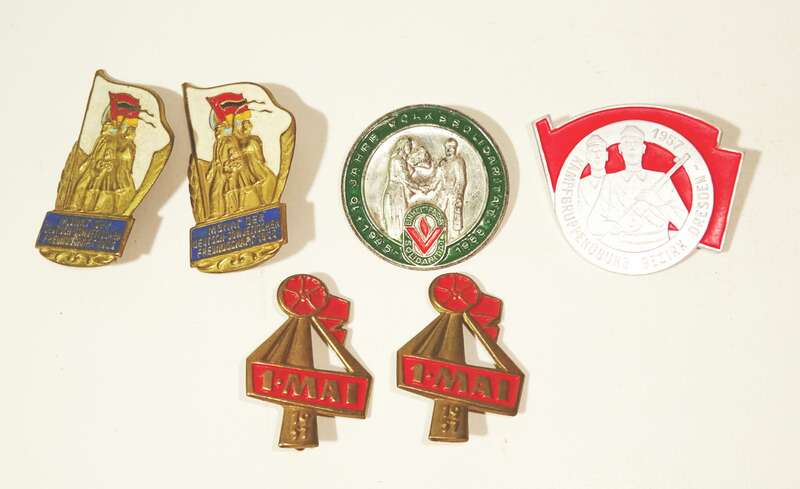 6 originale, alte Abzeichen, aus DDR-Zeiten.