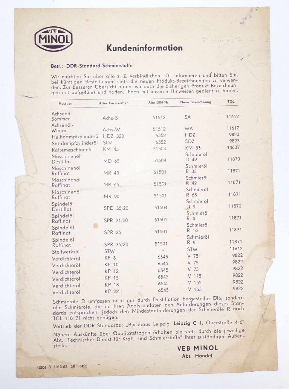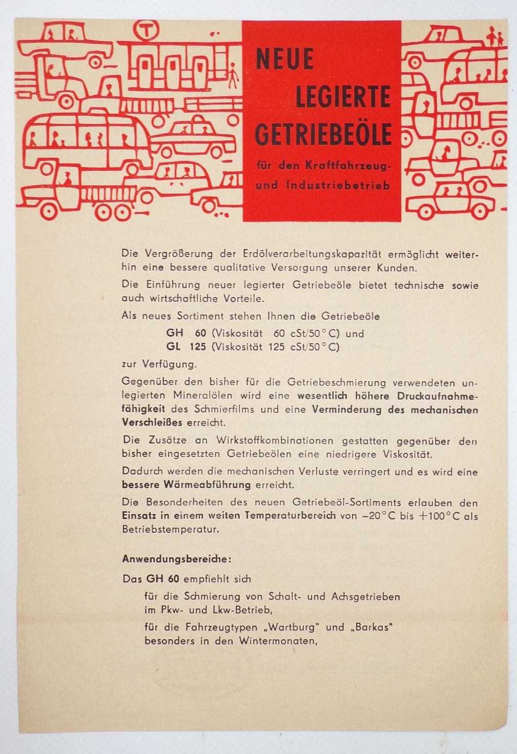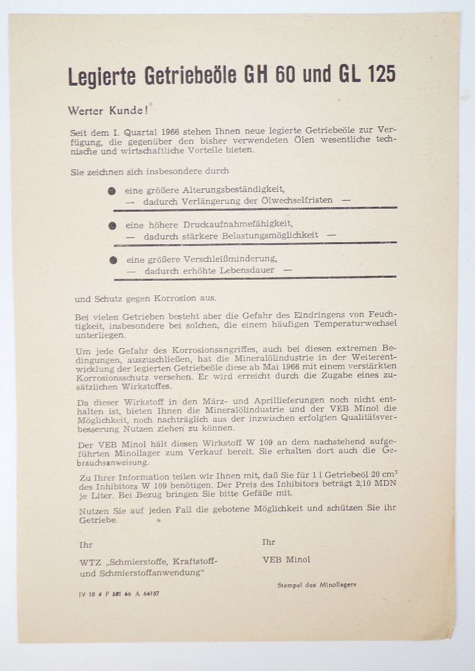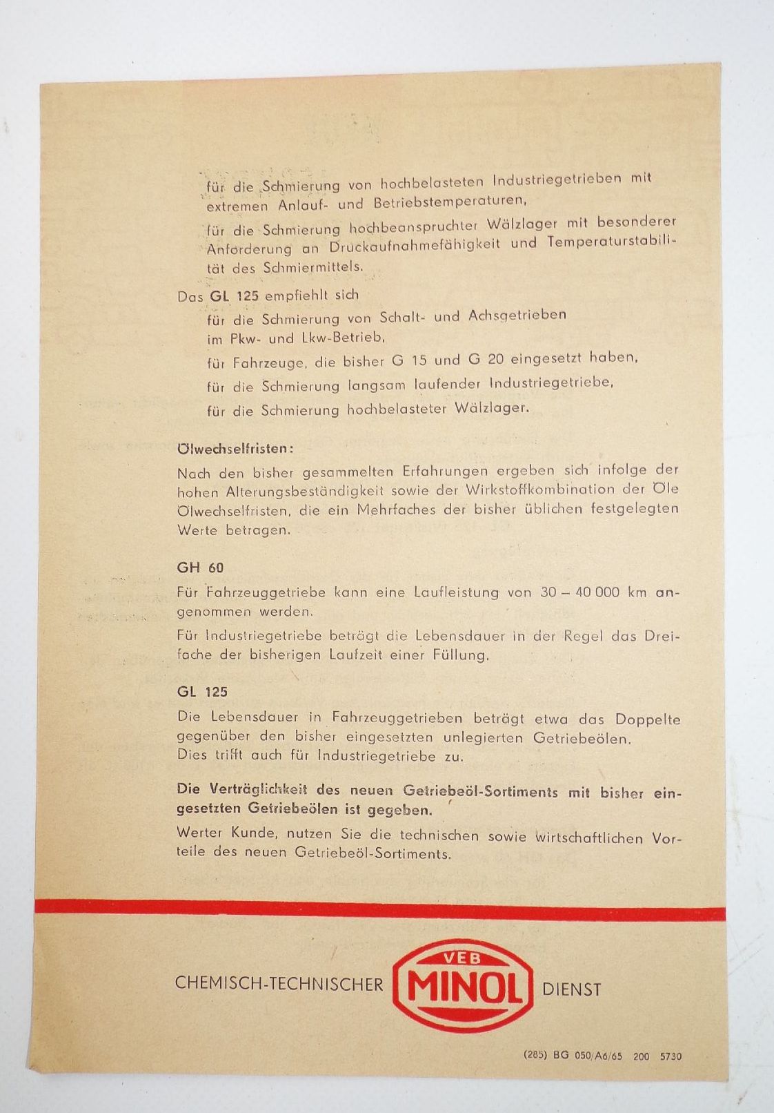 Minol Getriebeöl Werbe Blätter Drucke 1966 DDR Reklame