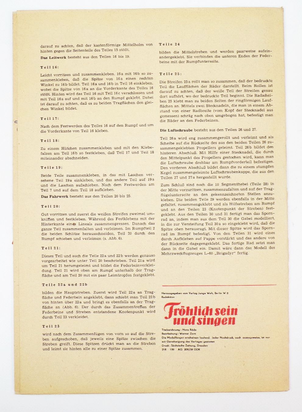 Originaler, alter Bastelbogen, DDR, 1959.