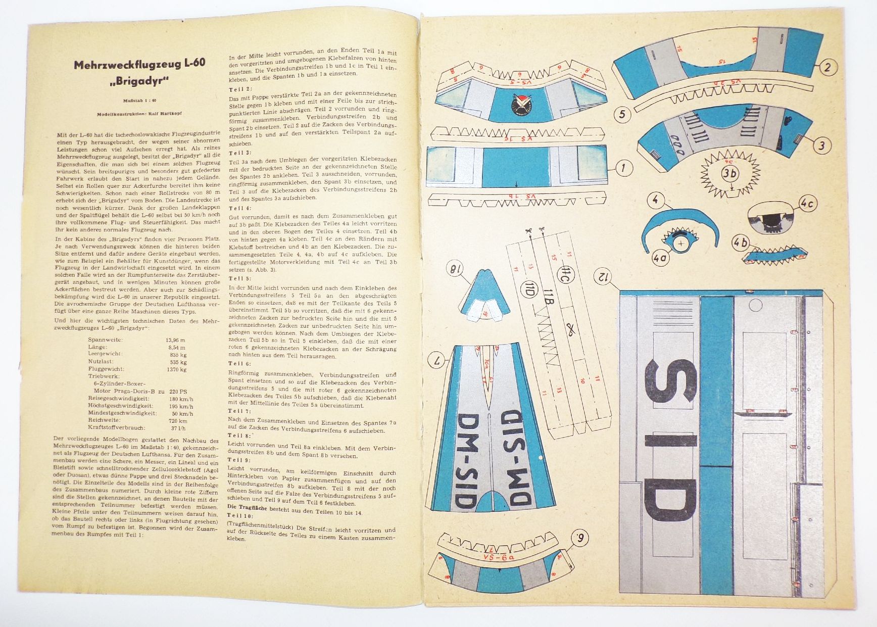 Modellbogen Kranich L-60 Brigady Mehrzweckflugzeug der Deutschen Lufthansa 1959