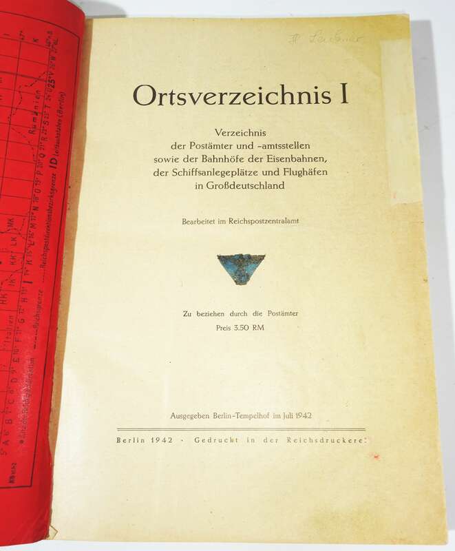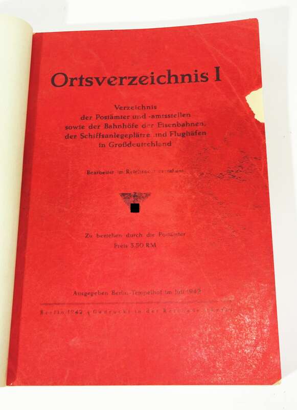 Ortsverzeichnis I Verzeichnis der Postämter Ämter Bahnhof Schiffsanlegeplatz Flughafen 1942