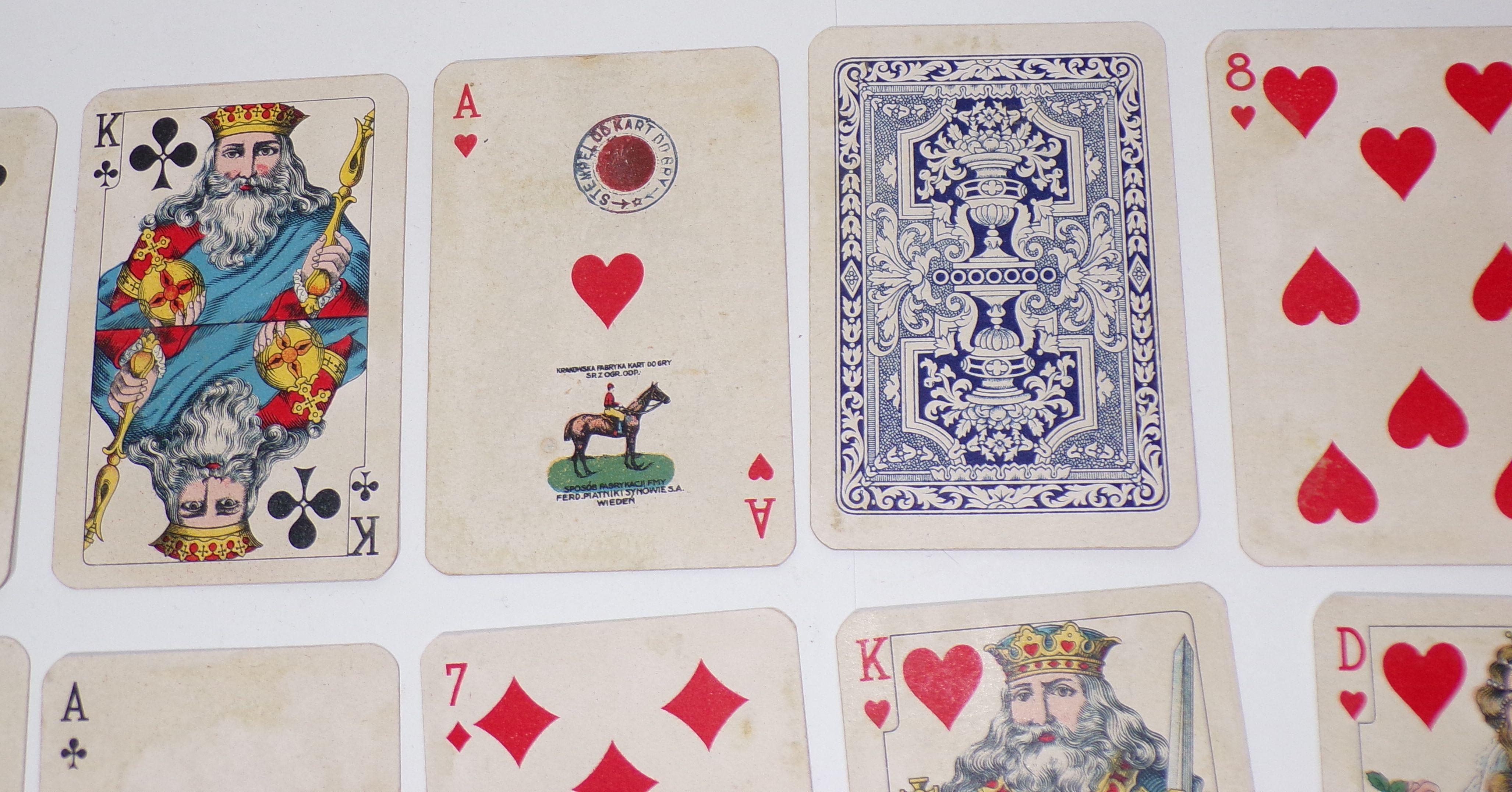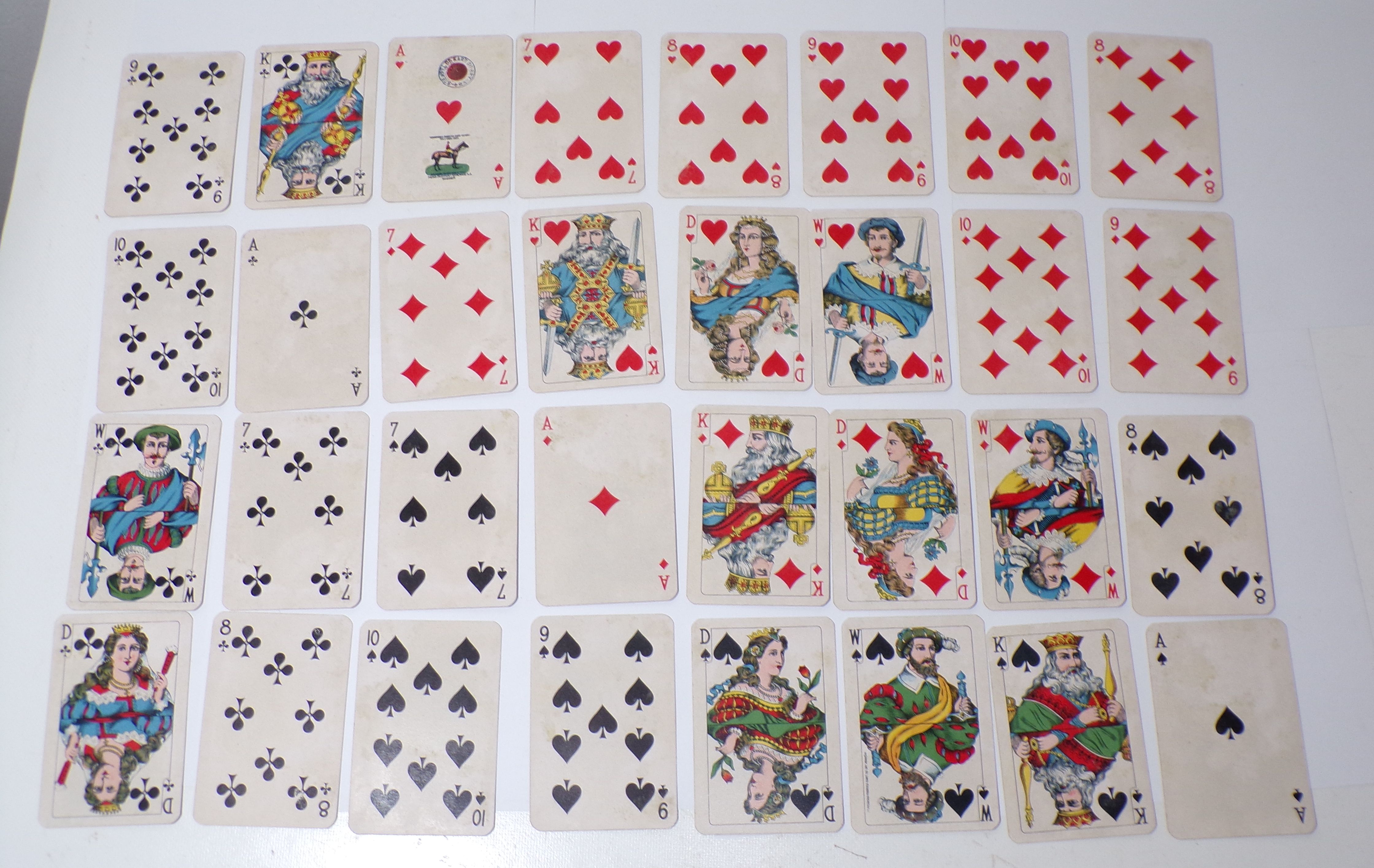 Originales Kartenspiel, 2. Weltkrieg. Piatnik No 511. Mit 32 Spielkarten. Mit Papierhülle. Zustand: Karten leicht altersfleckig, leichte Gebrauchsspuren vorhanden, alles weitere siehe bitte Fotos. Es wird keine Mehrwertsteuer ausgewiesen, da wir der Differenzbesteuerung nach § 25a UStG unterliegen.