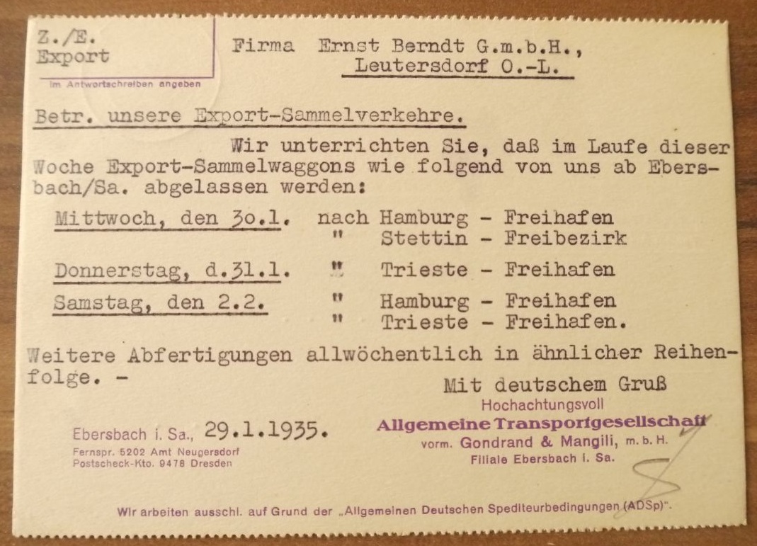 Postkarte Firmenbrief DR Allgemeine Transportgesellschaft