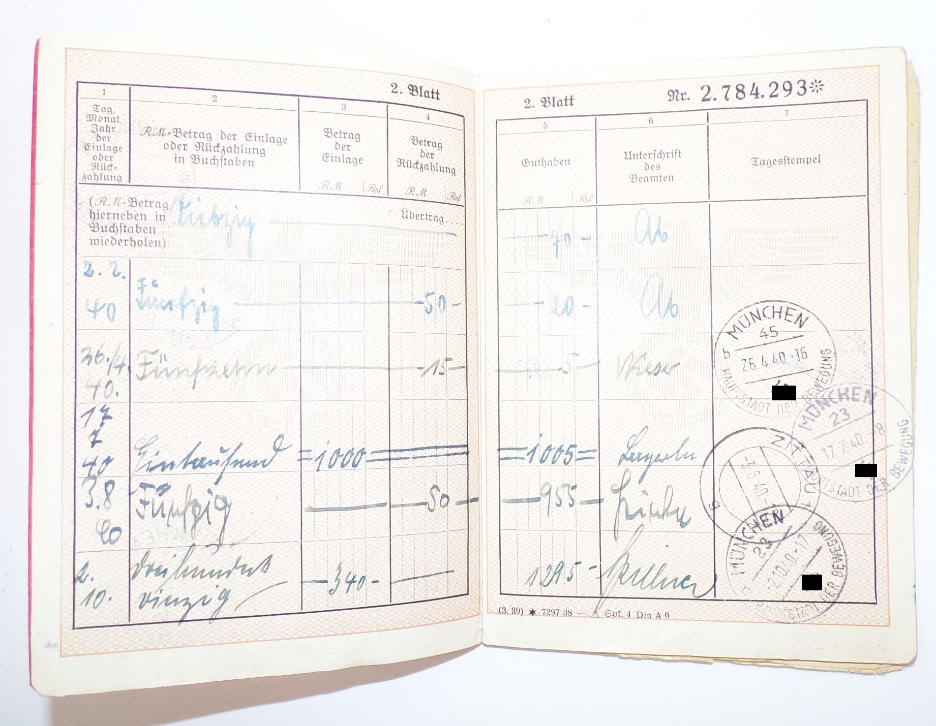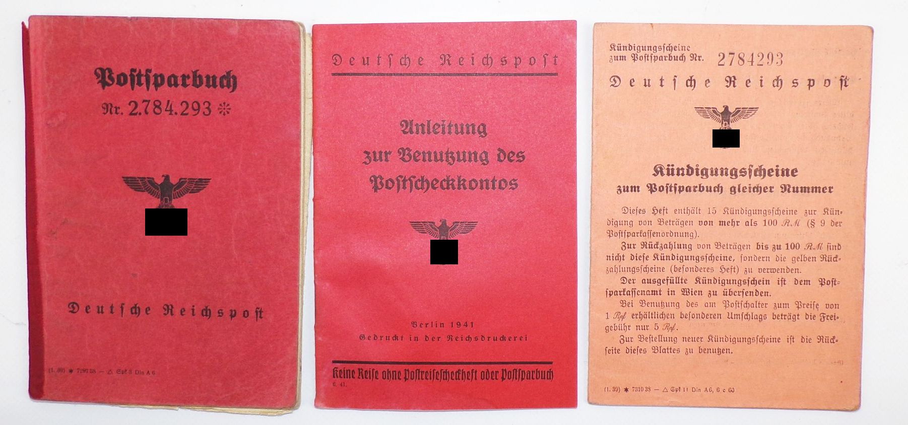 Erhaltung: Postsparbuch mit einer fehlenden Seite und losen Seite, alle Hefte etwas fleckig, gebraucht. Alles weitere siehe bitte Fotos.