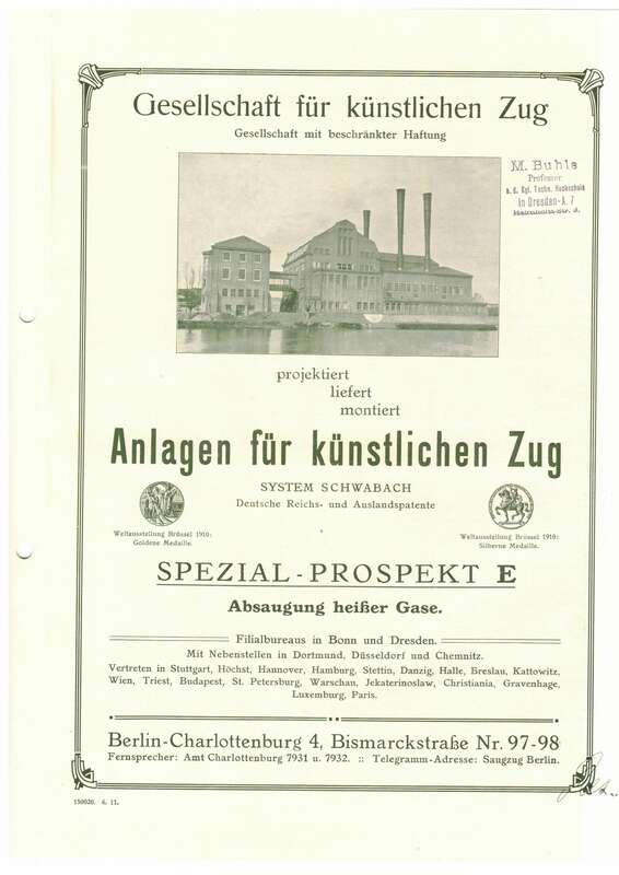 Prospekt Anlagen für künstlichen Zug Essenbau Schornsteinbau Berlin Charlottenburg 1911