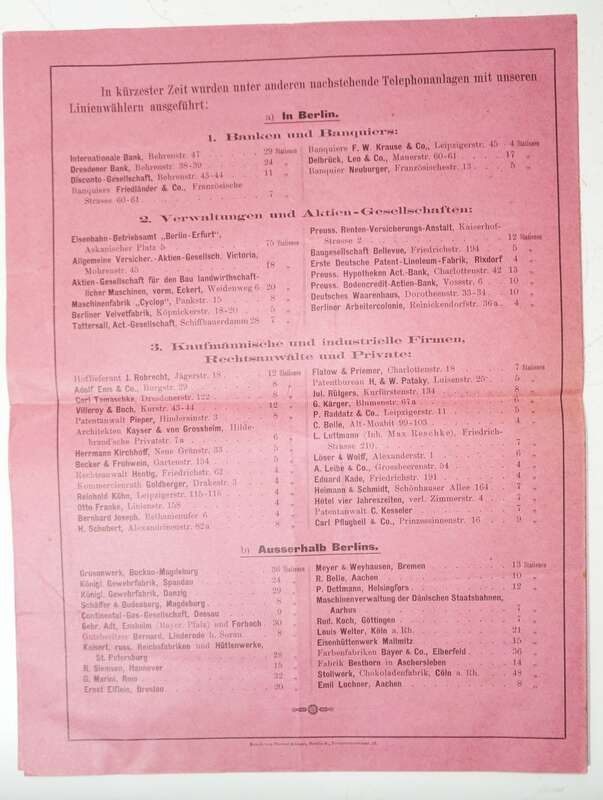 Prospekt Mix Genest Berlin Telephon Telefon um 1900