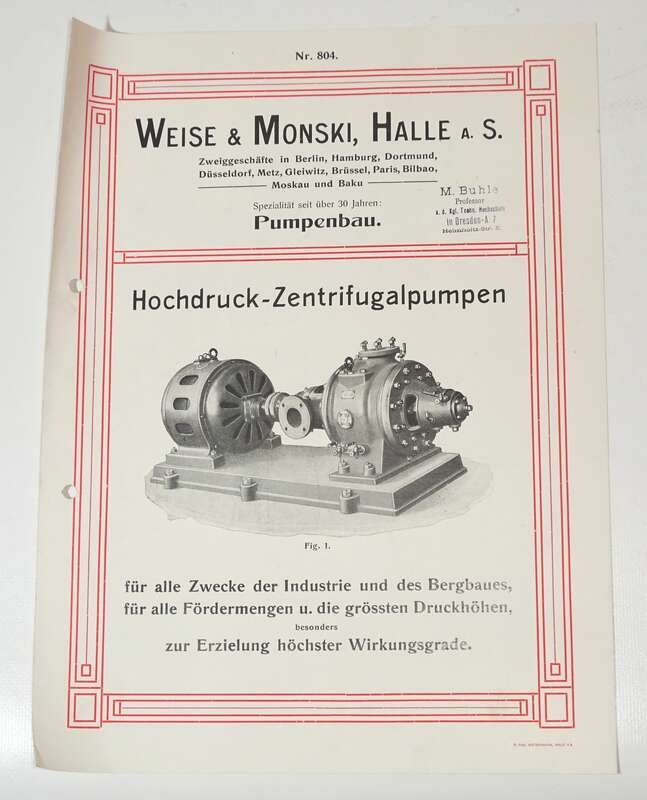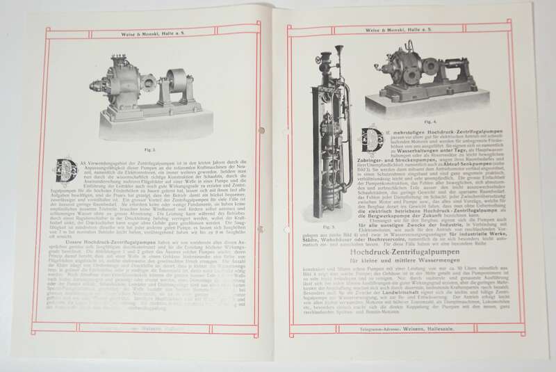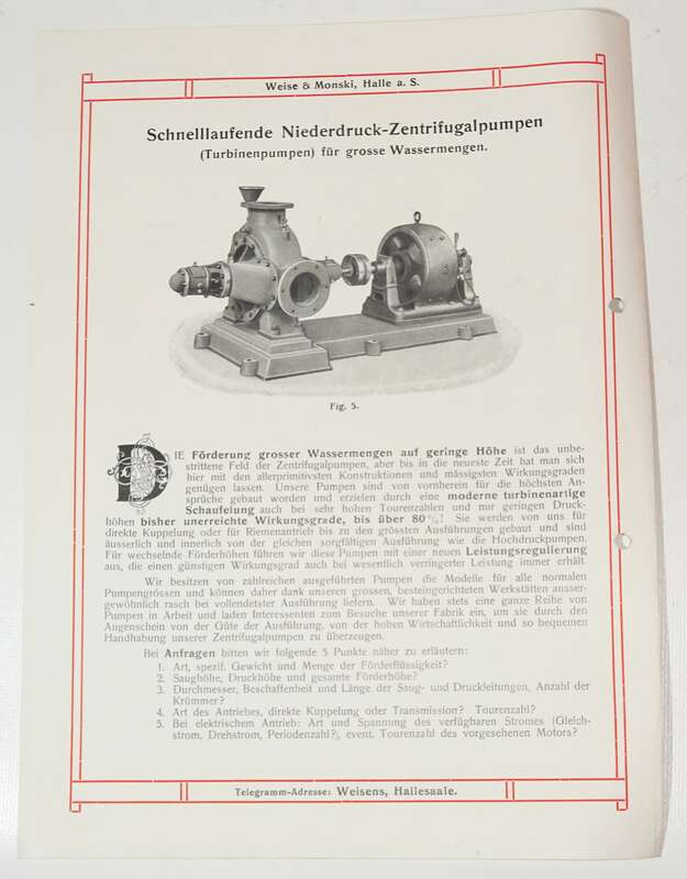 Prospekt Weise u Monski Halle Saale Pumpenbau Hochdruck Zentrifugalpumpen 1920er