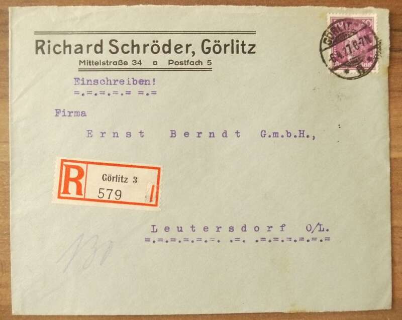 R-Brief Richard Schröder Görlitz Brief DR 1927
