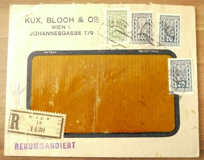 R-Brief Wien Kux Bloch u Co 1923 Österreich Brief Mischfrankatur
