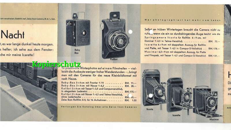 Reklame Prospekt Zeiss Ikon Kameras um 1930