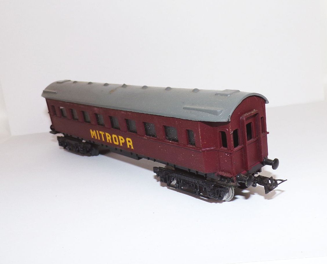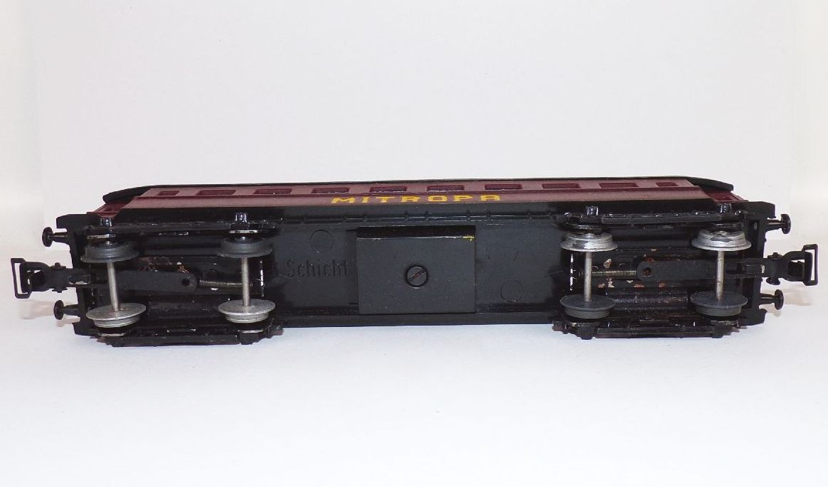 Originaler Mitropa Wagen von Schicht, Spur H0. Erhaltung: Boden mit Farbabrieben, Dach mit Fleck, ansonsten gut, alles weitere siehe bitte Fotos. Es wird keine Mehrwertsteuer ausgewiesen, da wir der Differenzbesteuerung nach § 25a UStG unterliegen. Intern Lagernummer M4