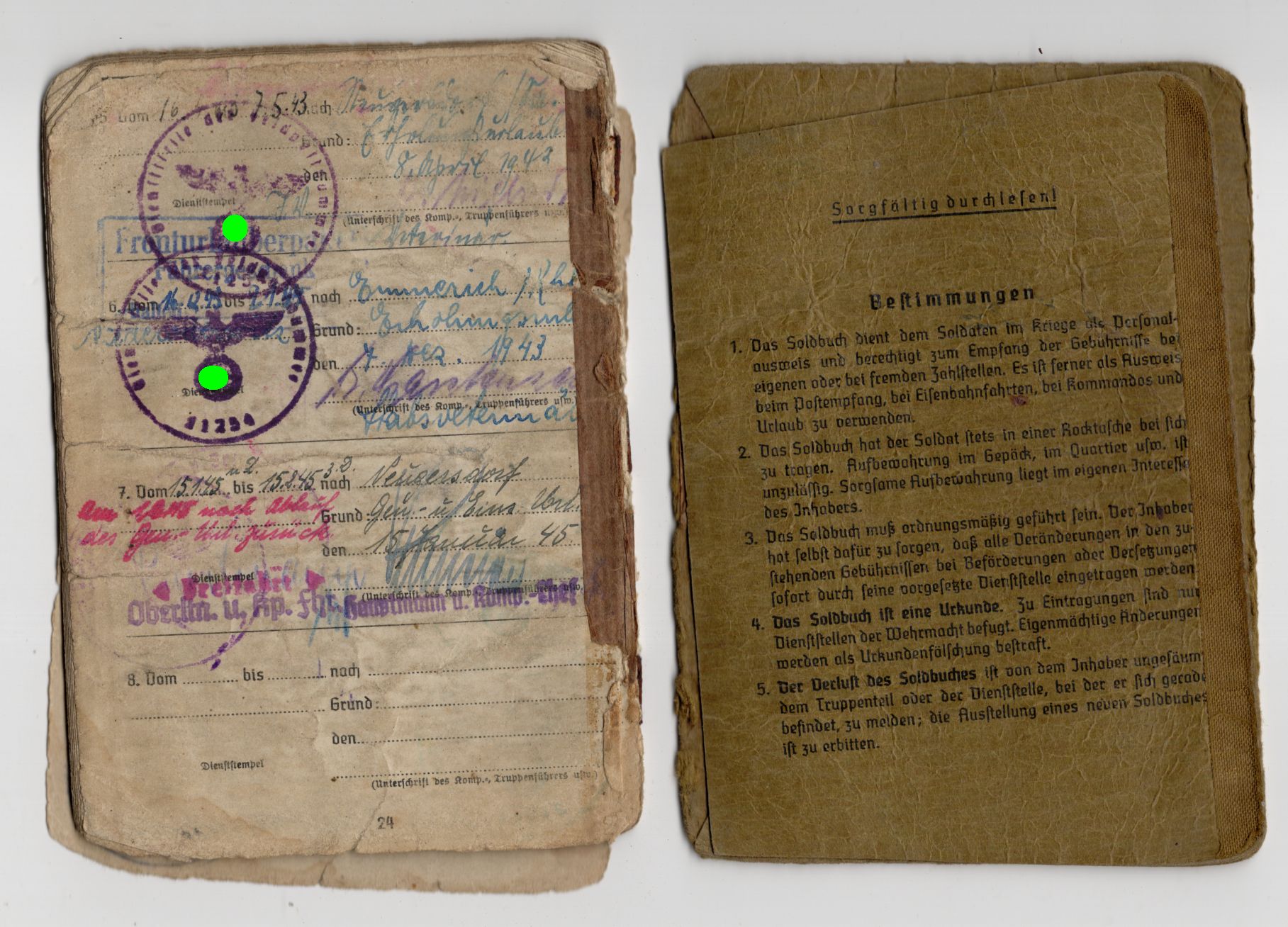 Originales Soldbuch, 2. Weltkrieg. 24 Seiten. Erhaltung: stark mangelhaft und abgriffen, beinahe alles lose. Siehe bitte auch Scans. Es wird keine Mehrwertsteuer ausgewiesen, da wir der Differenzbesteuerung nach § 25a UStG unterliegen. Interne Lagernummer D18