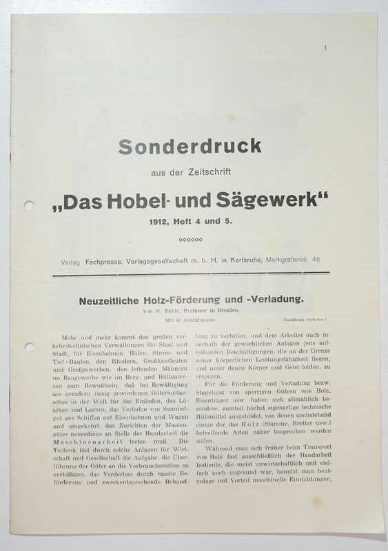"Sonderdruck Das Hobel und Sägewerk Karlsruhe Holz Förderung Verladung 1912 Tischler Zimmermann Schreiner"