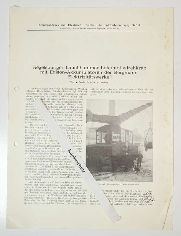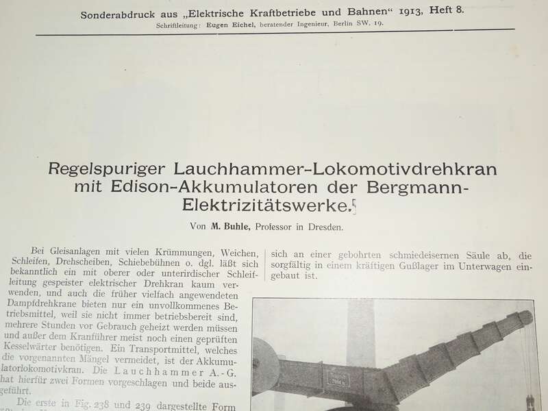 Sonderdruck Lauchhammer Lokomotiv Drehkran Edison Akkumulatoren Bergmann 1913 Eisenbahn