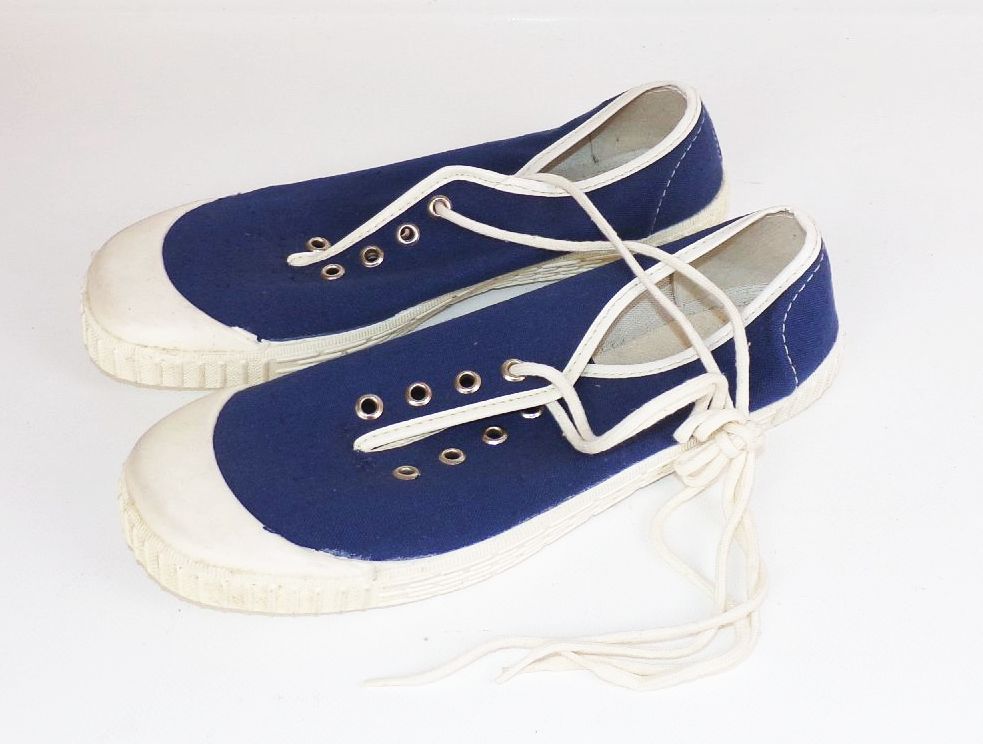 Originale Turnhose, aus der ehemaligen DDR. Größe: 48. Ungewaschener Fundzustand. Erhaltung: ungetragen, weißer Rand stellenweise mit kleinen gelben Flecken ( wohl lagerungsbedingt ), ansonsten gut, alles weitere siehe bitte Fotos. Es wird keine Mehrwertsteuer ausgewiesen, da wir der Differenzbesteuerung nach § 25a UStG unterliegen.