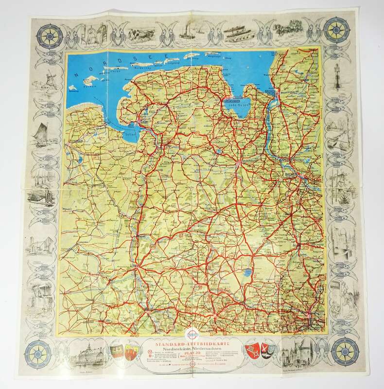 Standard Luftbildkarte Esso Plan 20 Bremen Emden Osnabrück 1930er
