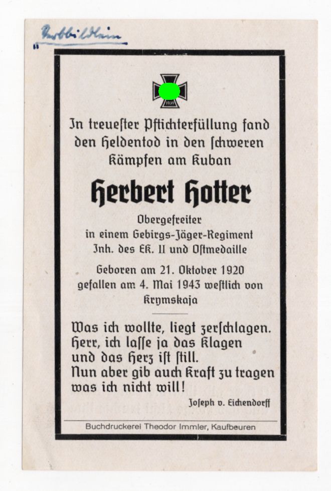 Originales Sterbebild, aus den 2. Weltkrieg. Erhaltung: beschriftet, gut, siehe bitte Scans. Es wird keine Mehrwertsteuer ausgewiesen, da wir der Differenzbesteuerung nach § 25a UStG unterliegen.