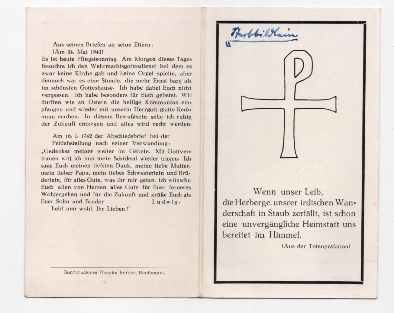 Originales Sterbebild. Erhaltung: siehe bitte Scans. Es wird keine Mehrwertsteuer ausgewiesen, da wir der Differenzbesteuerung nach § 25a UStG unterliegen.