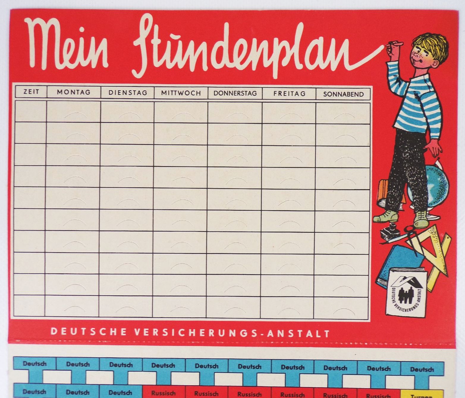 Stundenplan DDR Schulstunden Plan Dauerstundenplan zum Stecken