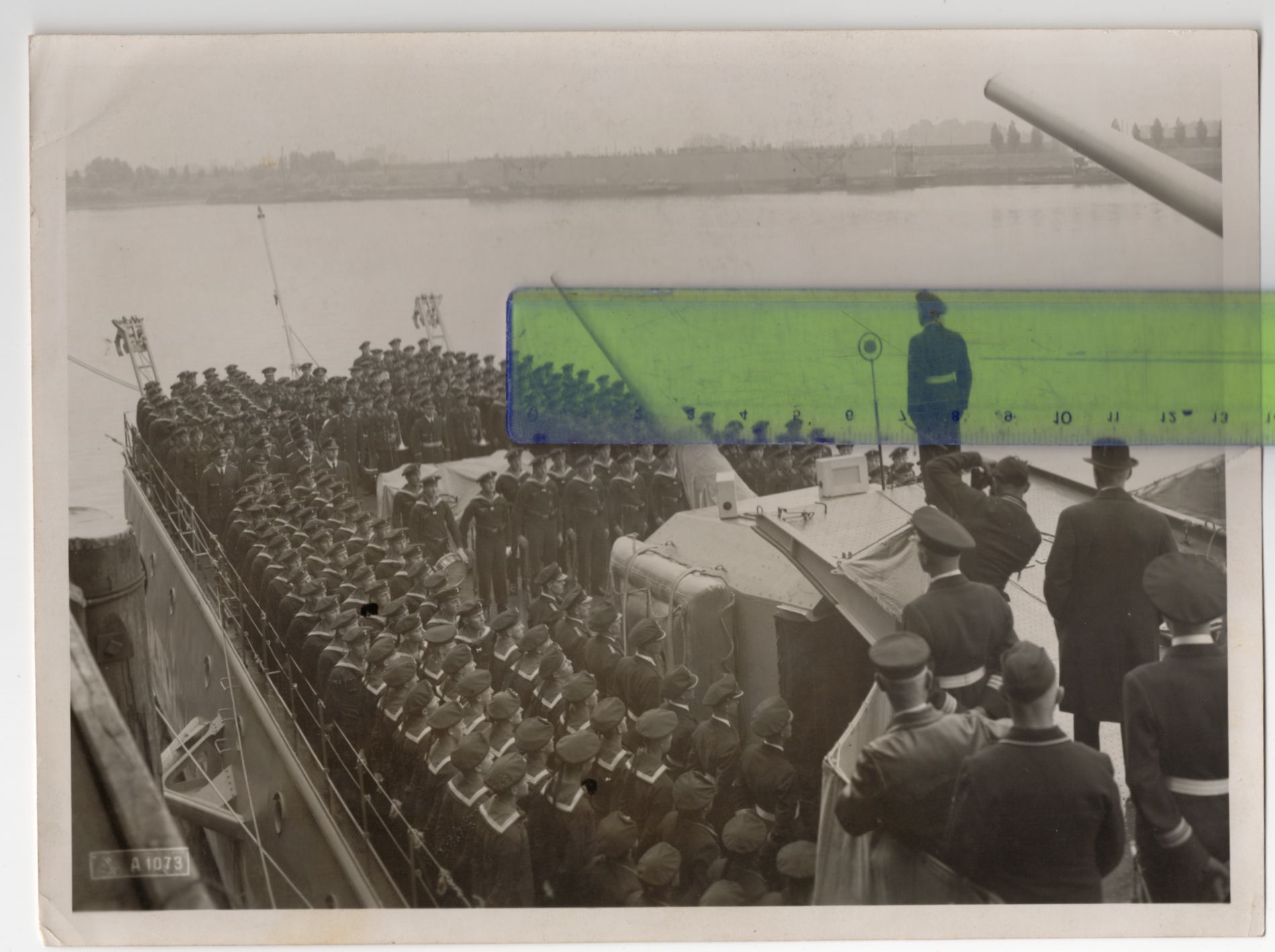 Originale Urkunde, Zerstörerkriegsabzeichen für die Teilnahme an den Kriegsfahrten des Zerstörers Bernd von Armin, 1940. Mit Unterschrift von Kapitän zur See Erich Bey. Dazu ein Foto ( 23 x 17,5 cm ). Beides aus einen Nachlass. Erhaltung: Urkunde leicht unsauber, Ecken des Fotos leicht bestoßen, ansonsten gut, alles weitere siehe bitte Fotos.