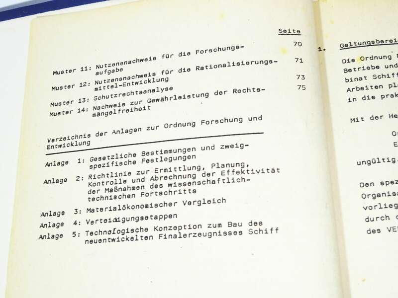 VEB Kombinat Schiffbau Rostock Ordnung Forschung Entwicklung 1987 DDR