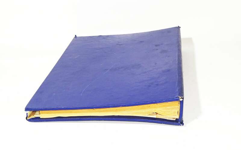 Originale Mappe, ungenaue Seitenangabe, Schraubbindung, Format: 16,5 cm x 22,5 cm.