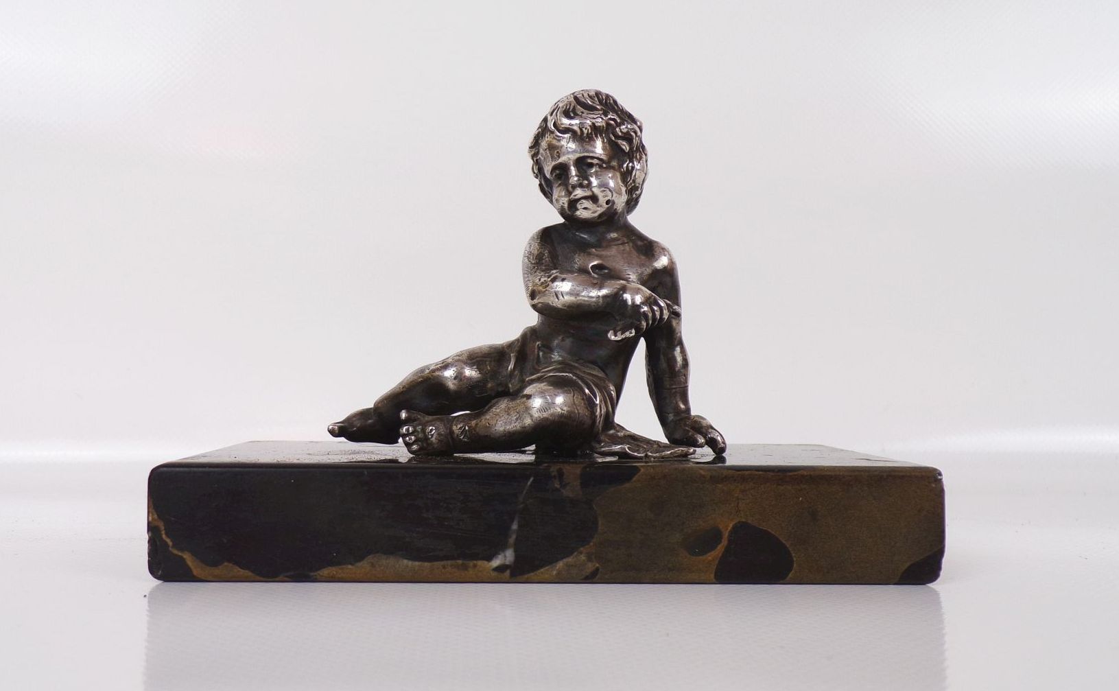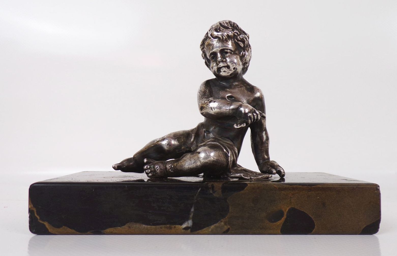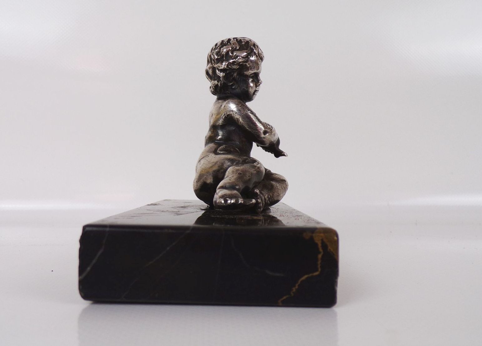 Versilberte Figur auf Marmor Sockel Putto Knabe Antik