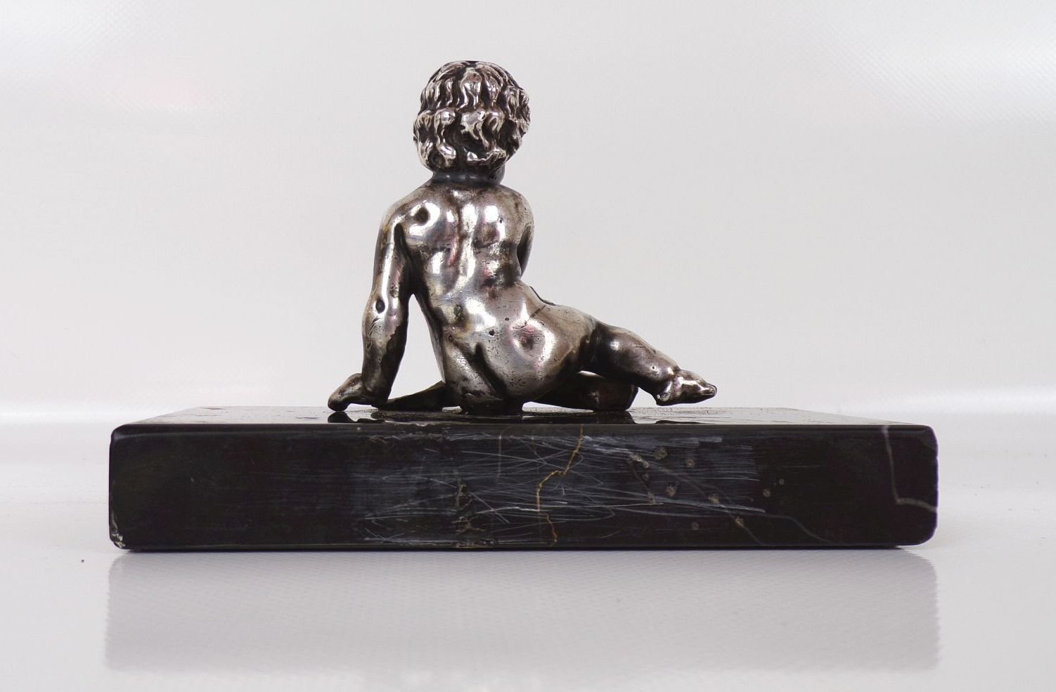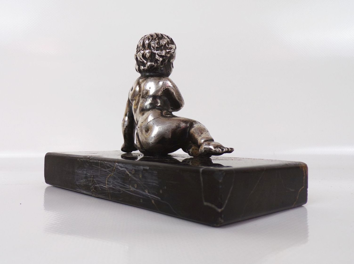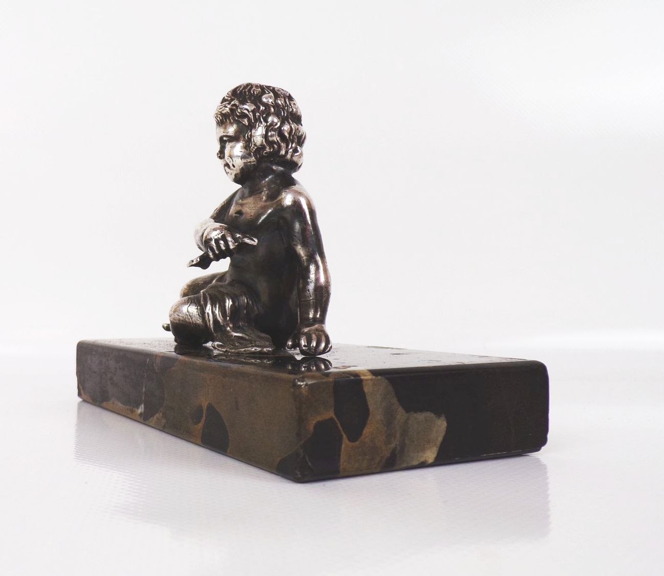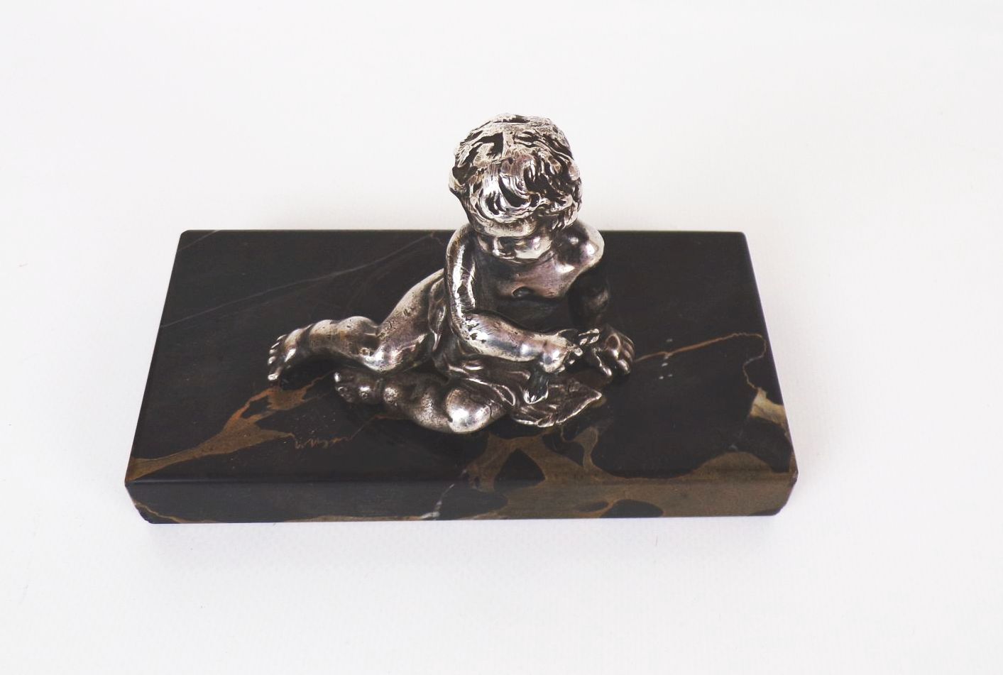 Versilberte Figur auf Marmor Sockel Putto Knabe Antik
