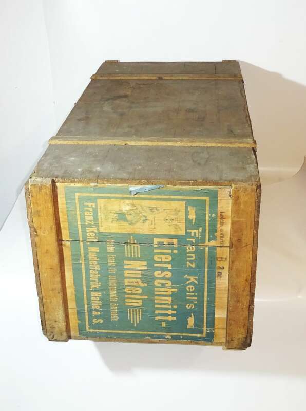 Vintage Holzkiste Franz Keil Hausfrauen Eiernudeln Reklame Jugendstil um 1900
