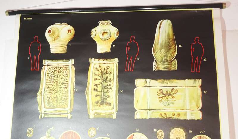Vintage Rollkarte Darmparasiten I Medizin Darm Lehrkarte Wandtafel