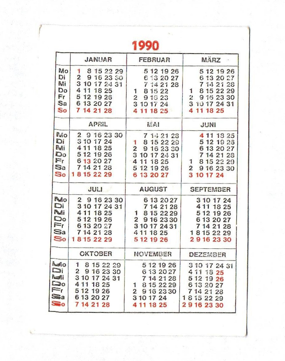 Visitenkarte Kalender VEB MINOL Dresden 1990 Karte Werbung