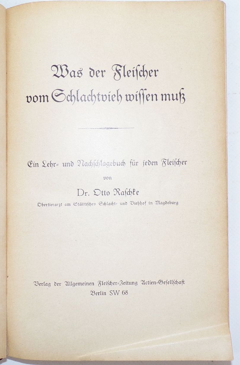 Was der Fleischer vom Schlachtvieh wissen muss Buch 1930 er Otto Raschke Metzger