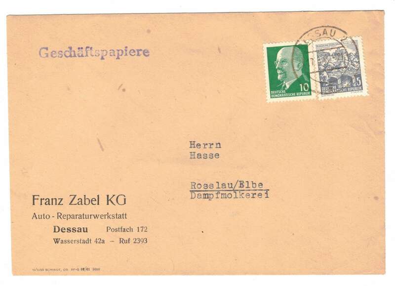 Werbe Brief Franz Zabel KG Auto Reparaturwerkstatt Dessau 1961