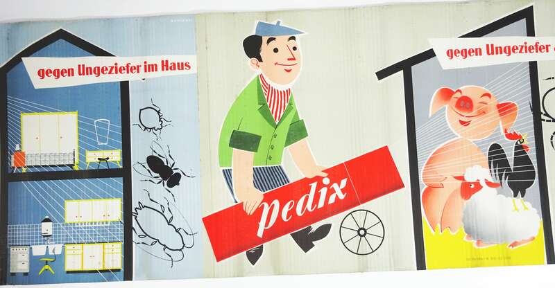 XXL Wellpappe Reklame Banner Flibol Pedix Hylotox 59 Aufsteller 3 D Vintage