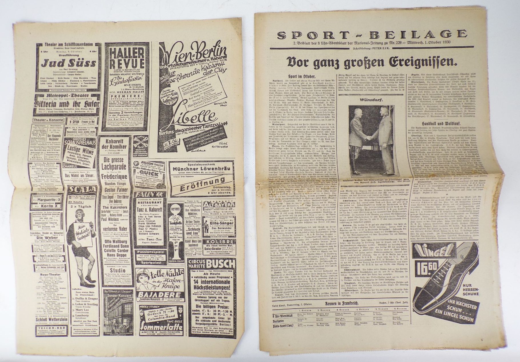 Originale Ausgabe der Zeitung " 8 Uhr Abendblatt National Zeitung ", Nr. 229 Berlin, 1930. Erhaltung: Ränder leicht unsauber und bestoßen, alles weitere siehe bitte Fotos. Es wird keine Mehrwertsteuer ausgewiesen, da wir der Differenzbesteuerung nach § 25a UStG unterliegen. Interne Lagernummer P5