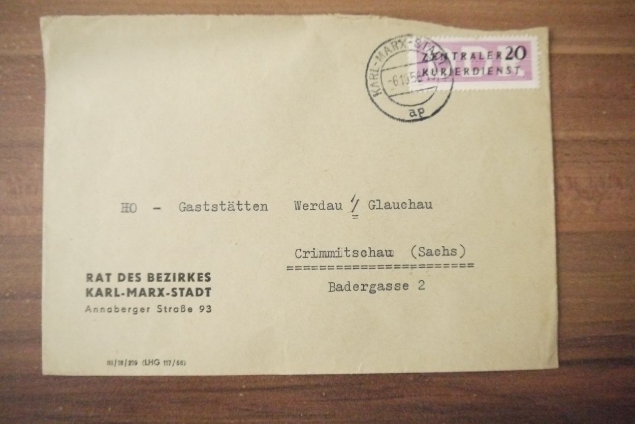 ZKD Brief DDR 1956 Rat des Bezirkes Karl Marx Stadt