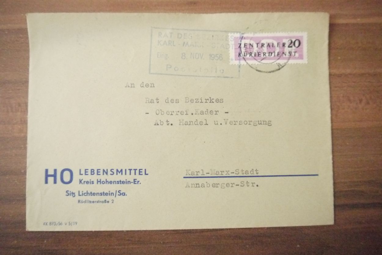 ZKD Brief DDR HO Lebensmittel Kreis Hohenstein 1956